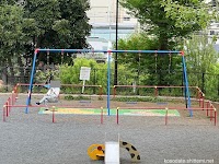 道路沿い 木陰がある遊歩道がいい感じ カッコイイ滑り台 心のかたち(座間市立西中学校 平成元年10月制作)水飲み場 スプリング遊具 トイレ ...