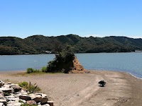 堤防からの景色が絶景。公衆トイレは綺麗。駐車場の階段を下りれば海へ行けます。