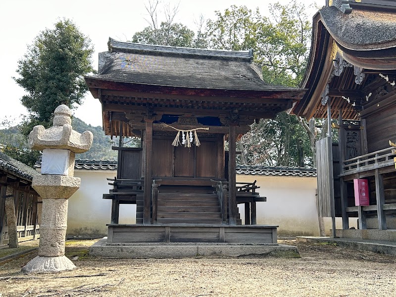 本殿向かって左に立つ一間社流造の社殿で、国の重要文化財に指定されています。屋根は柿葺きです。文化庁の国指定文化財等データベースの地理情報が2023年3月現在間違っており、野洲市入町にある日吉神社にマークがあります。この社殿は国道8号沿いの野洲市小篠原にある稲荷神社ですので、お間違いなきようご注意ください。