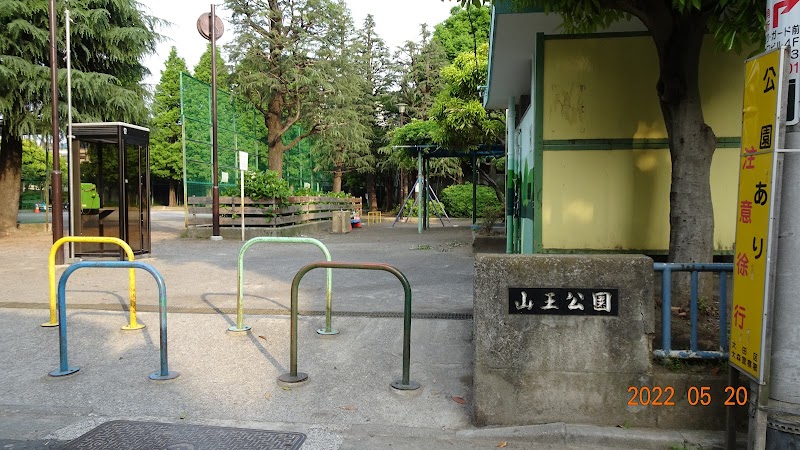 高台にある広い公園で、砂場、ブランコ、滑り台などの他に、子供野球が出来る広場もあります。広場周辺に木々が植えられていますが、明るく開放感のある良い公園です。(2022年8月上旬再訪)土曜日の午後、公園には自転車が停められ、多くの子供達で賑わっていました。山王公園は小グラウンドもある比較的大きな公園で、付近の子供達に人気があるようです。