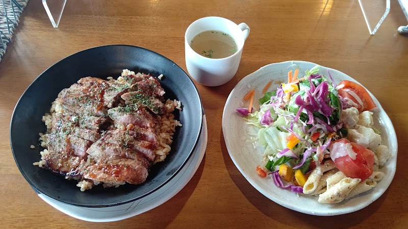 ランチメニューのビーフカレーと牧場の盛り合わせを頂きました。ランチメニューはサラダが付いてくるのでお得です。カレーの味は最初に甘さがきてその後に辛味がくる独特な味でした。結構ハッキリした感じです。肉はスジっぽい部分とそうでない部分がありました。基本柔らかくて良かったです。1680円牧場の盛り合わせは豚、牛、鶏肉がありソーセージも付いて野菜盛りだくさんでお腹いっぱいになりました。店の雰囲気も良いです。景観も良いのでリラックスして食事出来ました。乗馬も出来るという事なので馬さんが外で草食べてました。凄くめんこかったです。