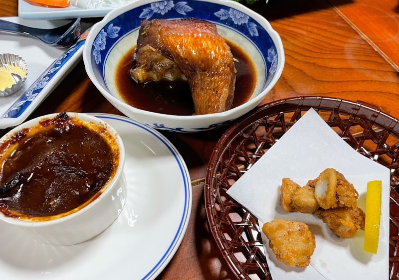 他の方も言う通り、食事のボリュームが本当にすごいです!!!とんでもない量のお刺身、分厚い身のキンメの煮付け、具沢山のお鍋に自慢の一品ビーフシチュー。さらには出来立ての揚げ物•••思い出しただけでもまた行きたい🤤ご飯はお櫃でくれますが、全て完食しお櫃でお代わりももらいました笑ホテルに泊まる機会が増えましたが、お食事がとっても美味しくて、懐かしい雰囲気の民宿に泊まるのも素敵ですね✨浴衣も貸してくれました^ ^トイレは3箇所もありどれも綺麗!歯ブラシや歯磨き粉なども充実していました^ ^一階の冷凍庫にはサービスのアイスも🍨朝食も干物やねぎとろなど美味しい海産物がしっかりメニューにあって朝からご飯が進みました!従業員の方の対応も温泉もとても気持ちよく大満足の旅になりました♫
