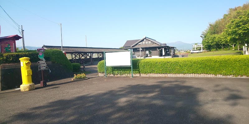 全国各地にある筒型の黄色いポストがおかどめ幸福駅前にも設置されていました。