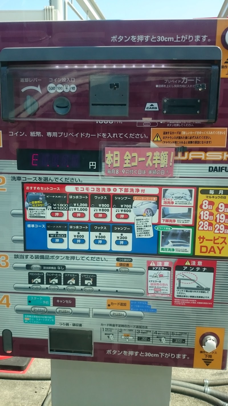 洗車の機能(ホイール洗浄)があるので時折行きます。8 ,9 日が半額ですけど、込み合うらしく通常の価格で行きました。少し老朽化は否めないですね😃