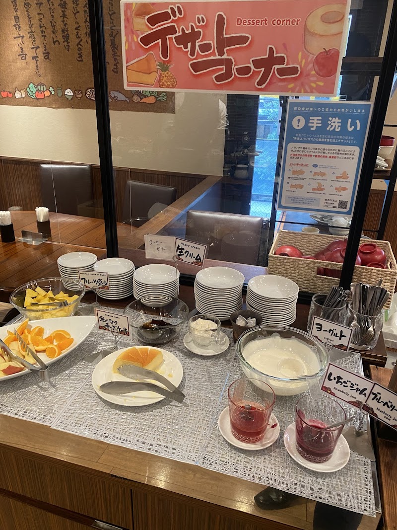 ダイワロイネット北浜2階にある朝食ビュッフェレストラン。宿泊者でなくとも1500円で健康的なビュッフェが味わえますよー😄ブランド龍の卵や大地のポタージュスープ、薬膳カレーは美味🌟釜戸のお汁粉もおいしかった🌟