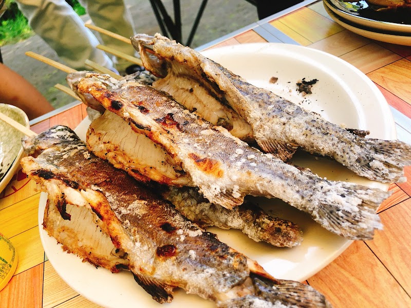 清田区の郊外にあり、札幌ドームから車で十数分。山部川という綺麗な小川の上流にある釣り堀。手ぶらで行って、釣りを楽しみ、釣った魚はハラワタを抜いた上で、炭火塩焼きで調理してその話で食べられる。ファミリーレジャーに最適なアウトドアレジャーかもしれない。実際釣りは初心者の子供、女性も多くコロナ禍で混雑が心配されるが、アルコール消毒液やおしぼり、ゴム手袋が各所に備えられており、感染対策はしっかりしている印象。人気があって混雑する点が玉に瑕かもしれない。貸し竿200円/人、ニジマス、銀鮭、山女魚等が4つの大きな養殖池に放流されており、それを万能竿に練り餌の仕掛けで釣り上げる。釣った魚は380円/100gで持ち帰りか、調理してもらいその場で食べられる。炭火で塩焼きした魚は香ばしくて臭みはほとんど無く美味である。但し、表面の振り塩はやや濃い目なので注意が必要。