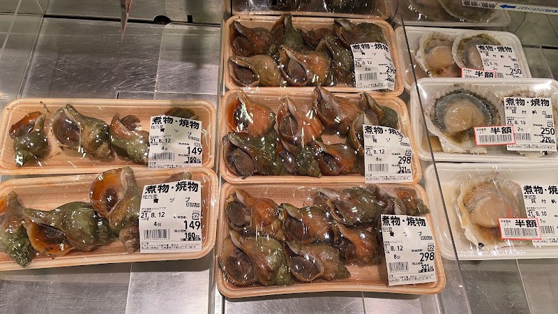 スーパー否八百屋スーパーで生鮮豊富。くいもんが売られてる感。新鮮さ落ちると値引きもある、我貧乏人には多少傷んでいてもイケる。隣のスーパーとはチト違う。卸売スーパーが駅近くにあるが卸売値段てなんかの間違い。稚内来たらまあ食料品はここだけにお世話になります。島に渡る前にモダで満タン、生鮮市場で万近く仕入れた車中泊おやじ。