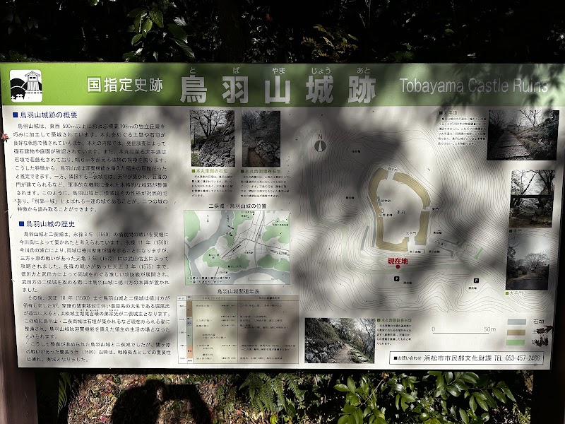 城址のすぐ近くにあり、広い駐車場で鳥羽山公園散策に便利です。