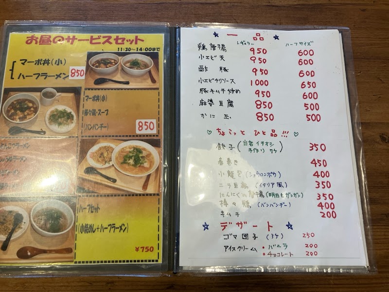 初めて行きました(^o^)/ラーメンはあっさりです麻婆豆腐はちょい辛めまた伺います(*^^*)ごちそうさまでした。