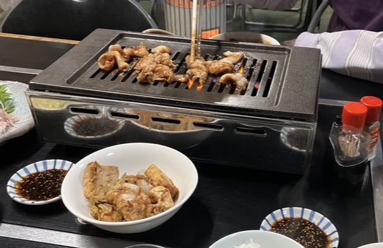 数年前から場所は知っていましたが遂に来店する事になりました。駐車場というか駐車スペースは店から数十メートル離れている昔ガソリンスタンドがあった場所(今は砂利が敷いてあってロープがかかっています)の前のスペースです。軽自動車4台分位並べて停められます。噂のホルモンとラーメン両方食べる為にラーメンライスとホルモン単品という形で注文。ラーメン…昔ながらの醤油ラーメンです。スープが真っ黒という見た目に反してあっさりしてます。あっという間に完食。ホルモン…豚ホルモンというと良く焼くというイメージですがここのは意外と焼き時間が早いです。ニンニクだれ最高です。肉の臭みも全くありません。速攻ご飯が無くなりましたがホルモンだけでも全然食べられます。追加オーダーとり皮…塩胡椒のシンプルな味付けです。しかしこちらも変な癖は全く無く適当に焼いても非常に美味しい!総評…もっと早く来れば良かったと後悔。人気店らしく開店からわずかに遅れただけでもう半数は埋まっていました。地元は勿論遠方からの客も多いらしくツーリングする人の目的地にもなっているとか。臨時休業などのお知らせはインスタで発信しているので遠方から来る人はフォローしておくと良いでしょう。