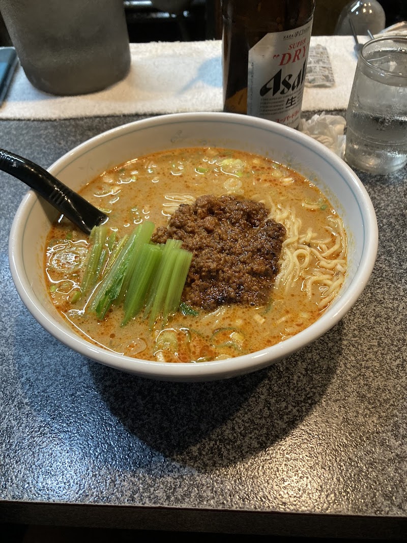 すぐ隣のコインパーキングに停めました。1時間二百円です。ドアは入口とも書いておらず、中も見えないので開けてよいのか一瞬迷いますが、店内は外観と同様、昭和57年くらいで止まったままの雰囲気。夕方5時過ぎに行ったらマスターが椅子に座ったまま寝ていましたので、数回声かけしたところ起きてくれました。タンタンメンと餃子を頼んだところ、餃子は目の前で餡を皮につつんで若干カリカリ気味に焼いてくれました。適度な辛さのタンタンメンはシンプルながらハッキリ言ってレベル高いです。また、テーブルに置いてあるビンに入った焼いた玉ねぎ?のカス?のようなものを入れてもなかなか美味しい🤤