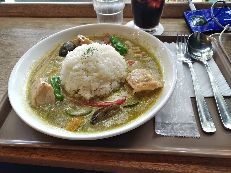 素敵なカフェ今日はグリーンカレーを頂きましたかなり本格的で、辛口のココナッツルーとナンプラーが、最高でした天井が高く、広い店内は仕事でも使えそうデザートに抹茶のロールケーキもいただきましたかなり甘めの仕上がりですごちそうさまでした。