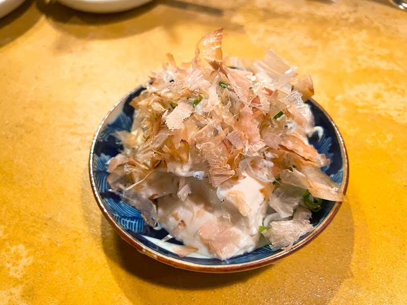 お任せで作って頂きましたお豆腐は 甘みがあるお豆腐でした牛にこみは 口の中でとろける煮込みでしたイカリング 小鯵フライもめちゃくちゃ柔らかくて シマアジ刺はめちゃくちゃ美味しかったですただ料理が出で来るまで時間がかかるので 注文を取り消してしまいました 食べられなかったお料理を今度また 食べに行きたいと思います(^^)