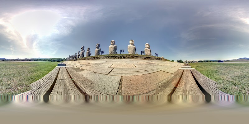 日本各地にあるモアイ像観るのが大好きです。宮崎、南三陸、姫路、などにも行っています。真駒内滝野霊園のモアイ像は33体あり、1番多いいと思います。モアイ像の横には仏具のマニ車、転経機、輪蔵があります。右回しをして、祈りを捧げました。北海道らしく雄大な大地に立っているのでゆっくり散策しながら見れて、大自然の中の明るい聖地を目指しているのがわかりました。他にもモアイの形の石の椅子などもあります。お土産なども売っています。