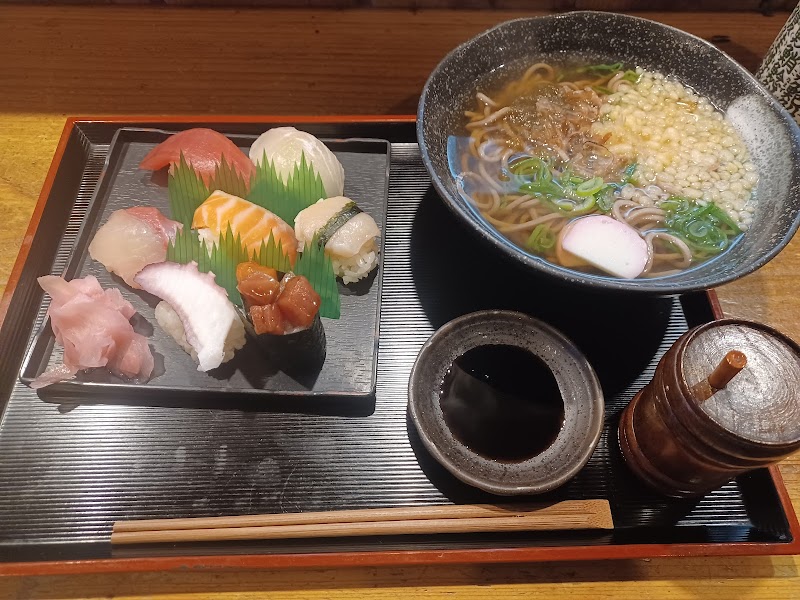 寿司定食(税込1000)寿司7貫と麺(選択可能)と紅茶かコーヒーの定食。麺は割と普通で、寿司はわさびが結構キくが良い。コスパは良い。