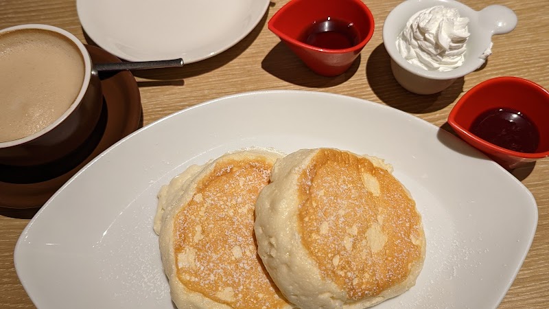 ふわふわパンケーキがとてもおいしかったです!休日の13時頃訪問したところ、満席で2組ほど待っており、20分くらい待って席に案内されました。焼き上がりまで20分かかるとのことでしたが、大人には雑誌や新聞、子供には絵本やお絵かき帳などがあり、待ち時間の工夫がなされていました。店員の方が常にインカムで話しながら注文を取りに来るのが気になりました。忙しいのは分かりますが、お客さんに着くときはインカム終わりで来てほしいです。1人席も充実しており、1人で来てる方もたくさんいました。電源が各席に用意してあるようで、スマホの充電もできるので助かります。駅近の休日だからか、常に人が待ってる状態でした。時間の余裕がある方にはおすすめです!