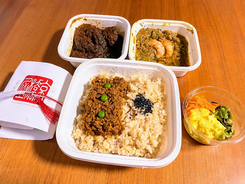 2019年12月今回初めてですが、キーマカレーとときえカレーの2種をオーダーしました。1800円です。ランチは別のお店でいただいたので、家に持ち帰り奥様と夜食のシェアでした。毎年、食べログ百名店入りしている同店ですので、評価と通りに間違いなく美味しいです。ただ、テイクアウトでこれだけの値段のするカレーで、皆さんの評価が高い、お客さんが途切れないということでとても期待してのには反して直感的な満足度はそれほどありませんでした。キーマカレーは良く仕込まれた数々のスパイスが深いコクと旨味を出して美味しく仕上がっています。ひき肉はかなり細かくなって粗目のペースト状。辛さはほとんどなくスパイス感だけ口の中に広がり美味しさを感じます。ときえカレーはいわゆるカレーとは別物で、エビのスパイス料理という印象を受けました。ご飯は店主さんのこだわり通り、炊き方も含めてとても美味しい。ご飯の美味しさを特に感じるお店は少ないのでとても印象的です。ただ、カレー好きでこだわりのある人ならいいと思いますが、一般的な人から見るととても高いお食事に感じると思います。うちの奥様もお値段聞いて絶句!好きな人のためのカレー店です。ご馳走さまでした。