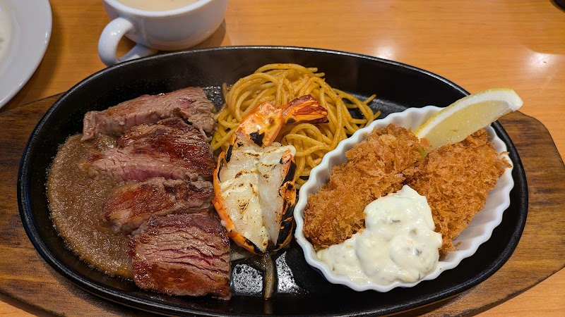 駐車場は広くて駐めやすい。今回はフェアでやっていたリブロースステーキ240g(記憶が曖昧)を注文。土日でも16時までだったらスープ・ライスお代わりできるのは嬉しいですね。お肉も美味しく、ソースも5種類くらいありました。味変も楽しめました。