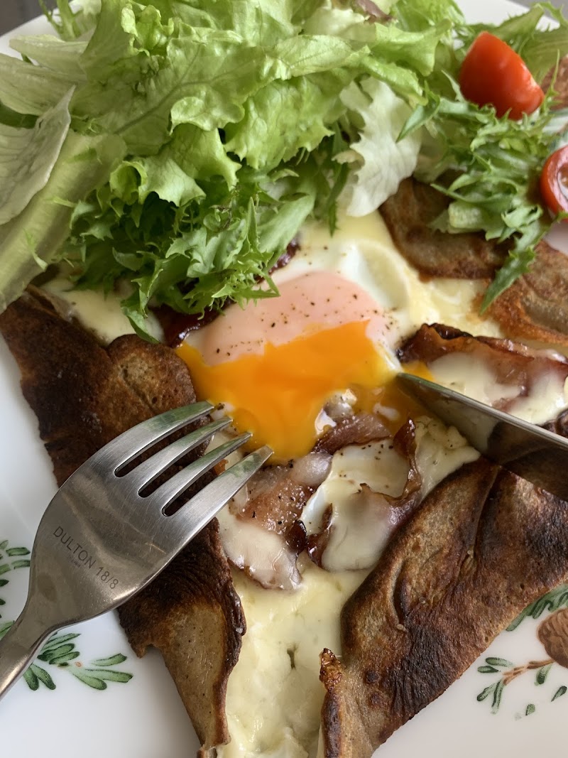 隠れ家的カフェ、靴を脱いで気持よく座るのがまたたまりません。ガレットを食べました。ベーコンかテンペというのを選べます、店主さんオススメ手作りのテンペを選びました。とても香ばしく、私は好みで美味しかった…✨コーヒーも美味しく頂けます。次はケーキも食べたいです。
