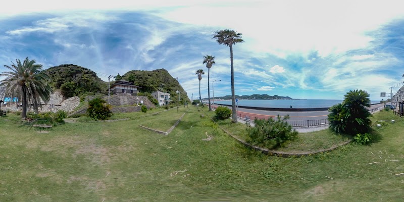 ベンチだけの公園。後のお寺には滝があり、前の海には不如帰の碑があり地味ですが好きです!