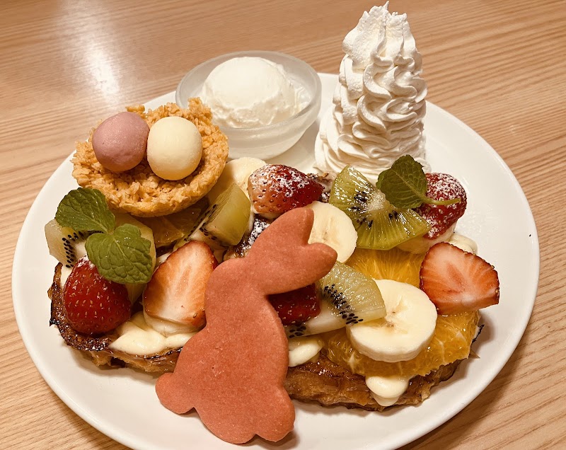 平日の3時少し前に訪れました。遅いお昼だったのですが、甘いのも食事系も食べたくて同行者と共に意見があったので半分ずつシェアする事にしました。GWまでの期間限定イースター飾りのフレンチトースト。エッグベネディクトを2枚にしてもらいました。とても美味しくてこのバランスで注文して良かったです!セットにした飲み物もたっぷり入って美味しかったです。店内はわりとゆったりしていて雰囲気も良いです♪