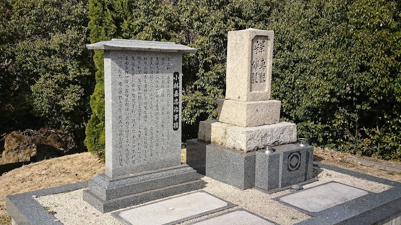 浄光寺西側の墓地に神辺市内を見守る様に建っています墓石には没年と家紋四菱が刻まれています。