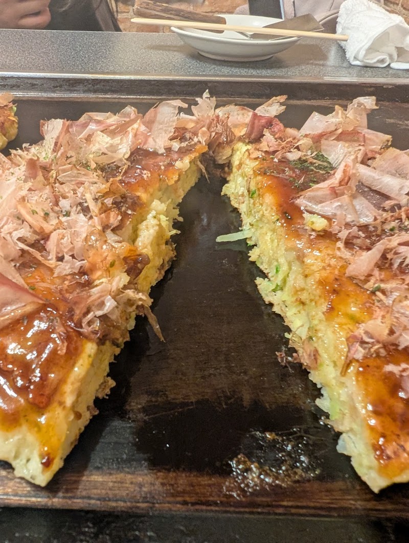 関西風のお店デス真備町のお店(現在はお持ち帰り専門)はうん十年前から通ってましたよしそトロ焼き、モダン焼き(うどん)美味しいしそは一面に配置され香りを愉しめるしモダン焼きはふわふわです焼いてもらっても食べるのは熱々の鉄板の上なんで美味しい〜わ駐車場が4台くらいしか停められんけんそこがちょっとじゃけどそれ以外は大好きなんよな久々に写真撮り忘れてガッツイたわ。
