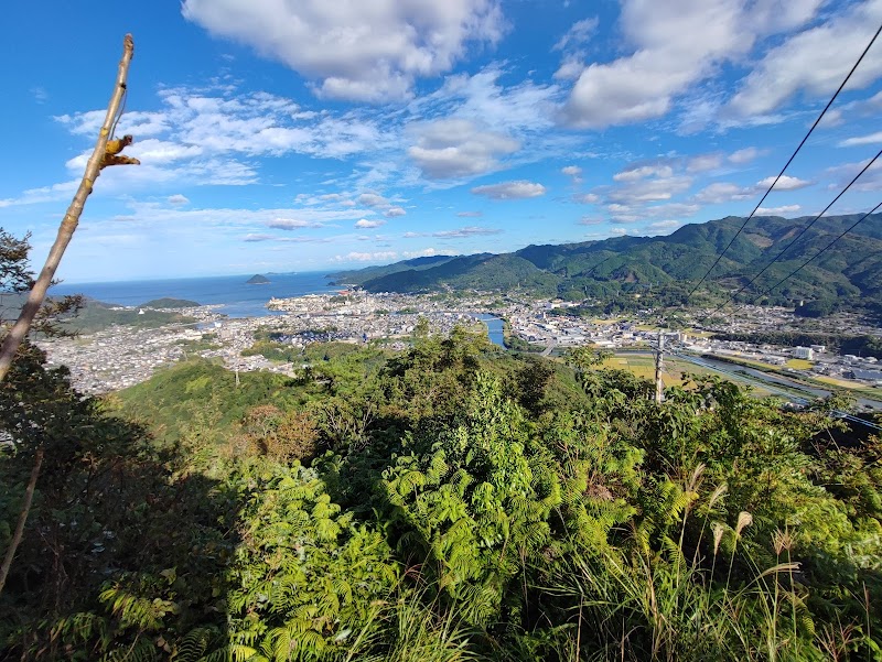 OBSテレビの電波塔があり、直ぐ近くまで車で行けますが、幅員が狭く両側の雑草がたれているので、離合はできません。北東側に臼杵の町並みと沖無垢島が見えて、景色は良いです。これ以外の方角は雑木林です。頂上近くの50m程は、極端な急勾配なので、足元に注意が必要です。
