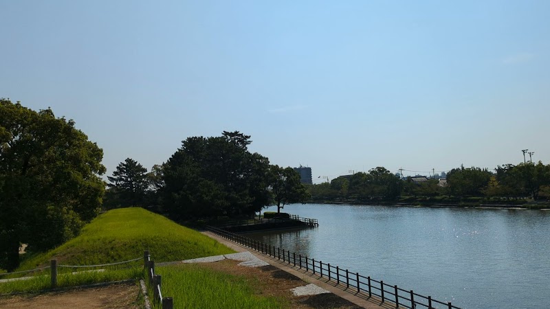 御殿の入口から反対側のほうにあり遠いので訪れる人はすくないです。櫓台に登ると、佐賀城の南側の外堀を俯瞰できます。堀の幅80m広いところで100mと言われ、この幅の水堀はなかなかお目に掛かれません。水が豊富で、悪く言えばクリークだらけな佐賀平野ならではの縄張だと思います。西側の復元された石垣を一直線に見ることができます。