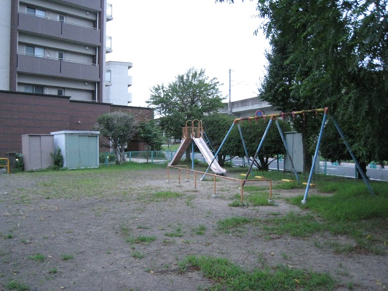 遊具が古くて狭い公園。遊具というか公園の整備して欲しいところ。横の道路が交通量多いのでちょっと心配。子供と遊んでたら、ズボン下ろしながら歩いてくるオッサンが現れたので退避!