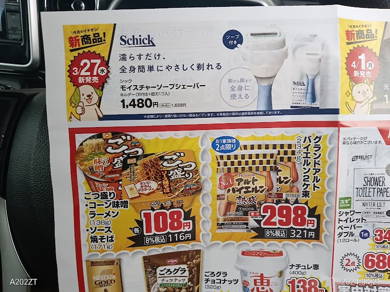 ドラッグストアーで品物がある。