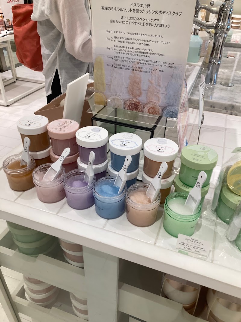 イスラエル発スキンケア、ボディケアのお店殆どの商品にテスターがあり、特に死海の塩を使用しているというボディスクラブは一押しのようで店内真ん中に洗面台?があって商品をしっかり試すことができます。インバスケア用品の容器が、ガラス瓶ではなくプラスチック製なので取り扱いが気楽で良いと思います(写真映えはガラス瓶に劣りますが)。どれも良い香りで迷います。