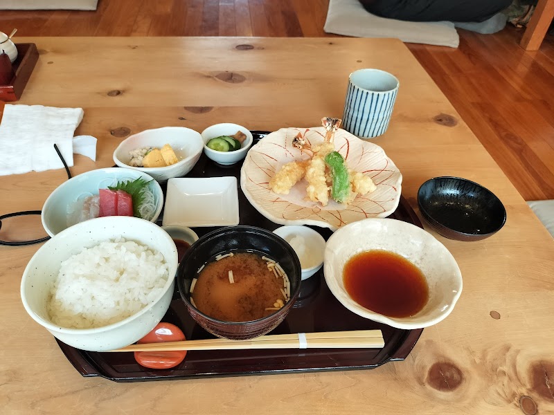 近所なので行こう行こうと思いながら20年以上経ってしまって。初めて伺いました。お昼時で賑わっていましたが、待つことなく座れました。ご年配の方が多い印象でした。天丼、お刺身付き天ぷら定食を注文。メニュー写真を撮ってたので、すぐに出てきた気がしました。そしてお料理の写真を撮らずに食べ始めてしまったので、食べかけ写真のみ。店員さんも明るく笑顔で元気もいいし、お料理ももちろん美味しくいただきました。天丼をちょこっと味見したら、さっぱり系のお味で、甘い天丼が好きなワタシは次回も天ぷら定食にしようかな。天ぷら定食は天ぷらがふた皿に分けて時間差で出てくるので、熱々を楽しめる配慮ですね。ご飯、お味噌汁おかわりできます。素敵なお店でした。また伺いたいと思います。