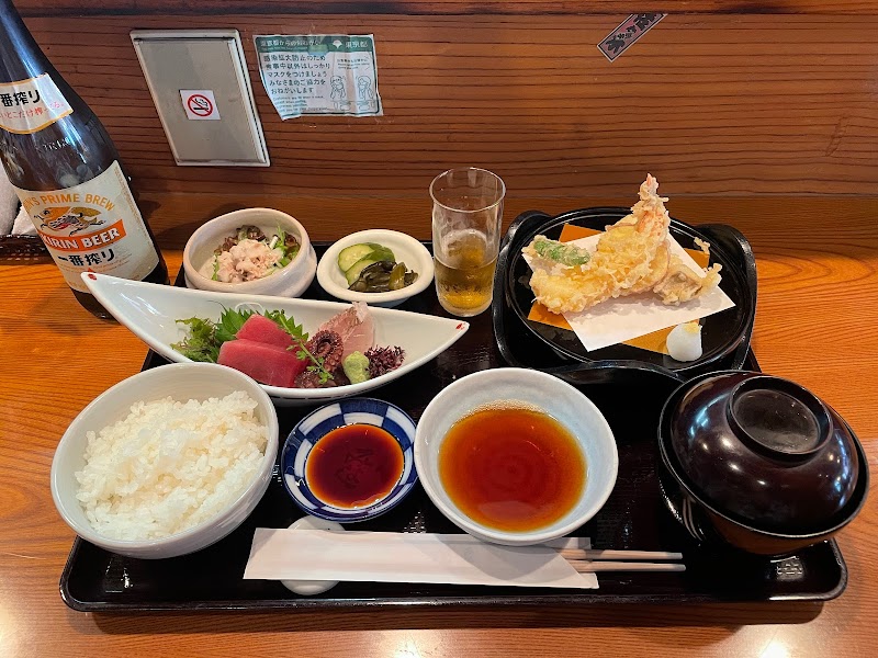 活いかがずっと気になっていました。本当はきょうはランチで定食だけにしようとって思ってたのが、水槽の活いかをみたらやはり食べたくなり、オーダー。そしてやはりお酒飲むよねってなり、昼から飲んでしまいました。一人でいかを1杯食べれて満足!その他には天ぷらの盛り合わせを注文。揚げたて美味しかったです。カウンター席があるので、一人でも安心です。