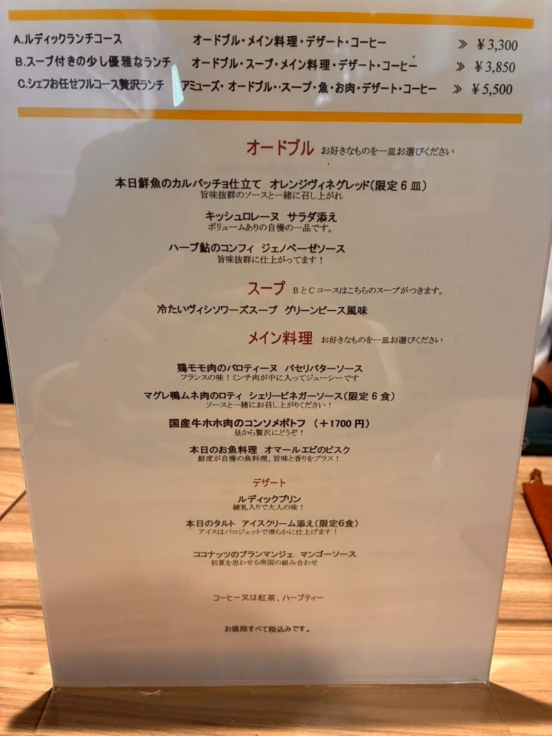 2022/12/11 ルディック飲み友さんにお誘い頂き久しぶりに浅草の「ルディック」へ。前回伺い大満足だったので今回も楽しみにしていました。アミューズのハムは口に入れて噛んだ途端に広がるジューシーな旨味。前菜のカリフラワーのムースも良かったなぁ。シラスの塩味が良いアクセントになってて最高💕サーモンにはさり気なくカラスミが♬エゾ鹿ハラ身にかかったソースが美味しくてパンをガンガンつけて食べたり。最後の〆に出た合いがけカレー❣これ言葉が出なくなるくらい美味しくてみんな無心で食べてました。最高なランチを頂き良い日曜日になりました。ご一緒頂きました皆様、ありがとうございました。1.アミューズパテドカンパーニュ米沢豚のジャンボンブランキッシュロレーヌ2.スペシャリテフォアグラ最中 巨峰と柿のジャム3.前菜カリフラワームース コンソメジュレとシラス、とびっこ乗せ4.前菜サーモンミキュイ キヌワのサラダ アーティチョークの香り5.お魚料理タラのブランダードのグラチネ タイとホタテのアンサンブル ブイヤベースソースで。6.お肉料理エゾ鹿ハラミ肉のパイ包焼き グランヴヌールソース7.締めブイヤベースカレーライス8.デザートプリンアラモードヴェルベェーヌのハーブティー#ルディック#フレンチ#浅草。