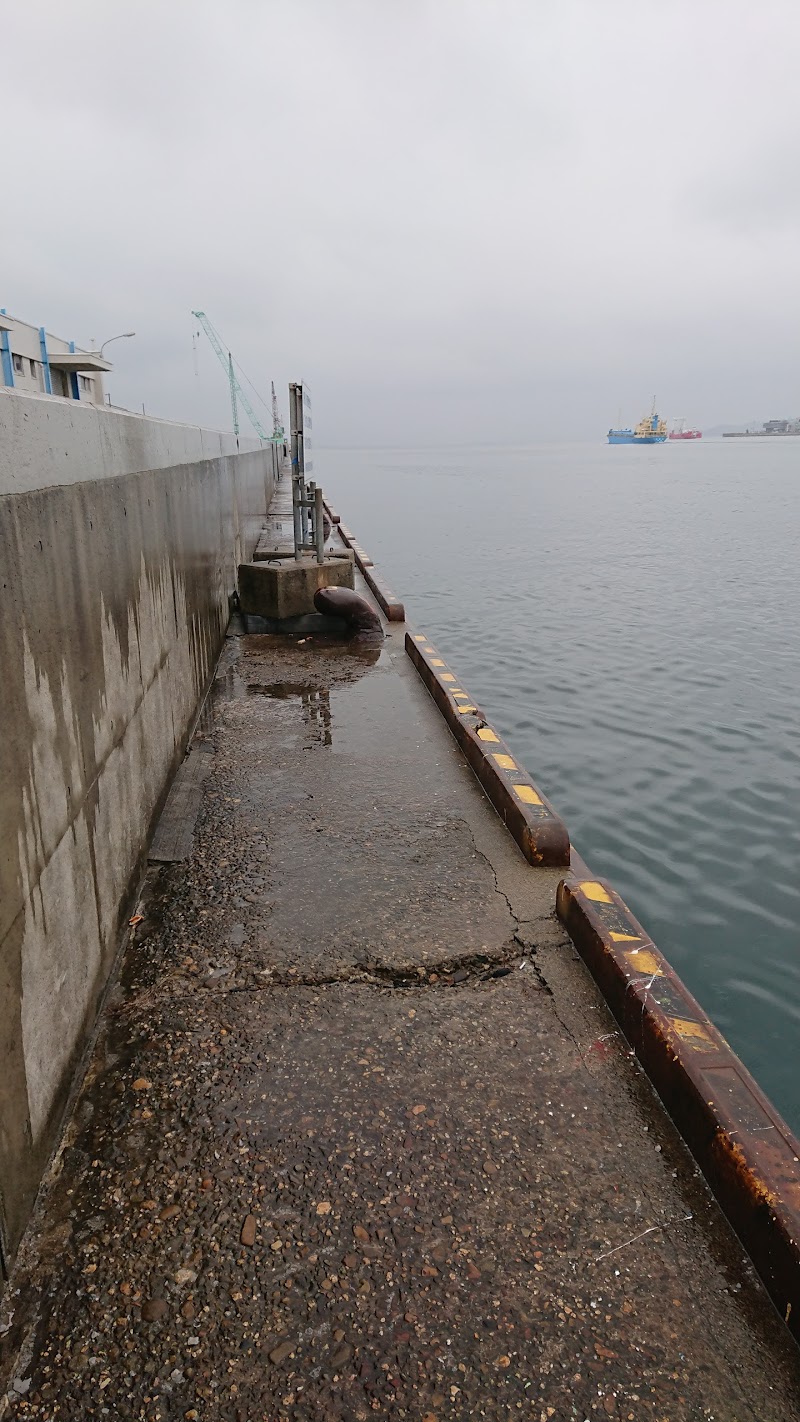 ビットからすぐ近くに壁が並んでおり、仮バースの為の埠頭と言える。壁のせいでタラップが下ろせないので少し危険。