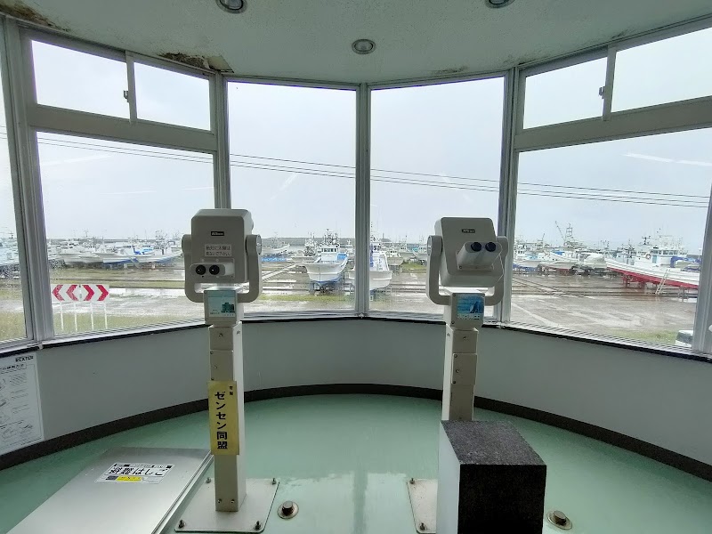入館無料。車は、隣のラーメン屋の駐車場に停めて大丈夫とのこと、共有で所有してあると受付のおばちゃんに言質を取った。施設は、あまり期待せずに入るのがいいと思う。小豆色のモルタル造りで古いからか、少しみすぼらしく見えて、無料とはいえ入るのに少し躊躇する。内部は、広くはない2階建てで、北方四島の説明や今の島民との交流なんかをパネルを使って簡単に紹介している。2階には海側に向く展望所が設けられていて、望遠鏡も取り付けられていた。晴れていれば国後島がよく見えたのかもしれないが、あいにくの濃い霧が覆われていて、目の前の船置き場も霞むぐらい。晴れた日に望遠鏡で眺める国後島がここの最大の売りかなとと思う。