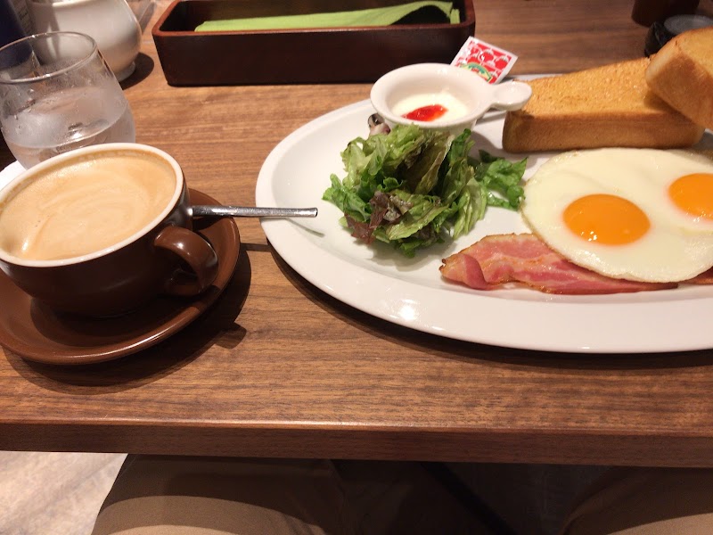 ソファ席に柔らかい座布団が置いてあって腰に優しい感じになってるのが他の店ではあまりみられないので良かったです。店内も綺麗で気持ちよく食事出来ました。目玉焼きとベーコンのモーニングもトーストが柔らかくて美味しかったです。エッグベネディクトも気になったのですがモーニングを選択しました。メニューも豊富で飽きないかんじが良いと思います。