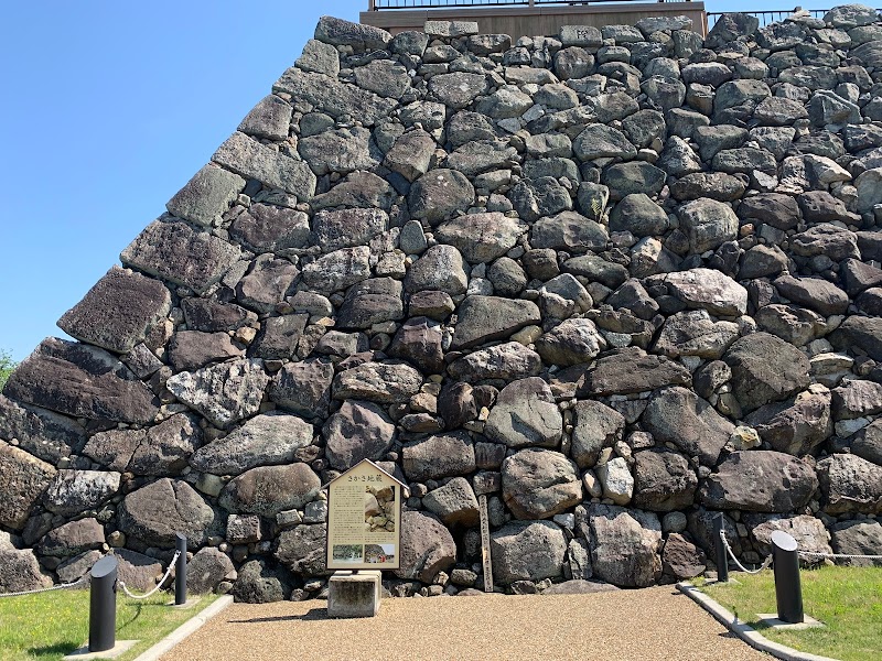 戦国時代に大規模改修された際、付近にあった石材を手当たり次第に石垣や詰石として使用した中に、このお地蔵さまをはじめ墓石や付近の古墳の石材も多数含まれている。当時、築城を急がされた人々が、苦肉の策で転用したものと思われる。それだけ、切羽詰まった状況だったのだと、大変さが思い起こされる。このお地蔵さまは、当時の人々の信仰心や苦悩が、少しの隙間を開け、拝めるようにし、許しを請ったのだと思う。天守台の北側に鎮座されているので、訪れた際は、是非手を合わせていただきたい。