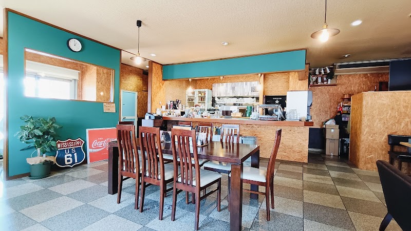 日曜日のお昼に伺いました。店内は喫茶店と言うよりはアメリカンダイナースなとても明るくてお洒落な雰囲気。週末限定ハンバーガーを注文しましたが、丁寧に作られているようで、私たちの直後に来店した方々はタイミングも悪く、かなり待たないといけないと言われ泣く泣く退散する人もチラホラ…。そんな中で待つこと数十分、来ました!久しぶりに見るピンに刺さったハンバーガー!袋に入れて大口開けてかぶりつくと、溢れるソースと肉汁!肉々しいパティは食べ応え十分で、たっぷりのレタスとタマネギもホントに嬉しい!市内でここまで本格的なバーガーはまずないんじゃないかな?そしてメニューを改めて見ると、様々なランチメニューやカフェメニューも充実していて、改めて平日に訪れるのも悪くないなぁ、と思わせてくれる魅力溢れるお店でした。