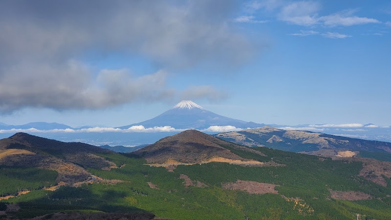 晴れると達磨山、富士山、西伊豆の海、天城と見える。駐車は自動車5台くらいなのでお早めに、牧場の家からお散歩気分ではきつい。トレイルの途中なので歩きやすく、ねっこだけとかも1時間くらいでハイキングにもいい。