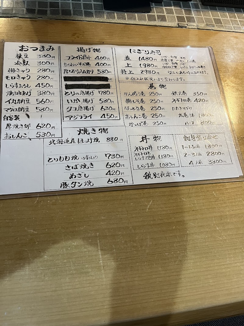 知り合いの行きつけで一緒に行ってみました。お刺身がとても新鮮で料理はどれも美味しかったです✨お店の人も感じが良かったです☺️居酒屋なので仕方ないですが、周りの声にかき消され声を張らなくてはならないので、おしゃべりするのがやや疲れました💦でもまた行きたいです🎵