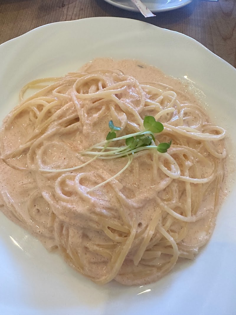 お店の雰囲気も落ち着いていてとても良かったです。パスタも美味しく、パスタ好きの息子も今までに食べた明太子クリームの中で1番と言っていました。私が食べたトマトクリームもとても美味しく、しっかりした味なのに食べた後に重くならない上品な優しいパスタだと思います。ご高齢のお客さんもいらしていた理由がわかります。また行こうと思います。オススメです。