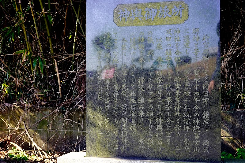 風化して読むのがやっとの石碑には、「淡嶌大明神」の文字がかすかに残っています。隣に後年据えられた石碑には、お磯下りの際の神輿担ぎの休憩場所?であったような記述がありますが、新宮素鵞神社はここからずっと海寄りの三反田地内なので、ここがお磯下りの神輿回りの経由地だっとすると何だか不思議な感じがします。