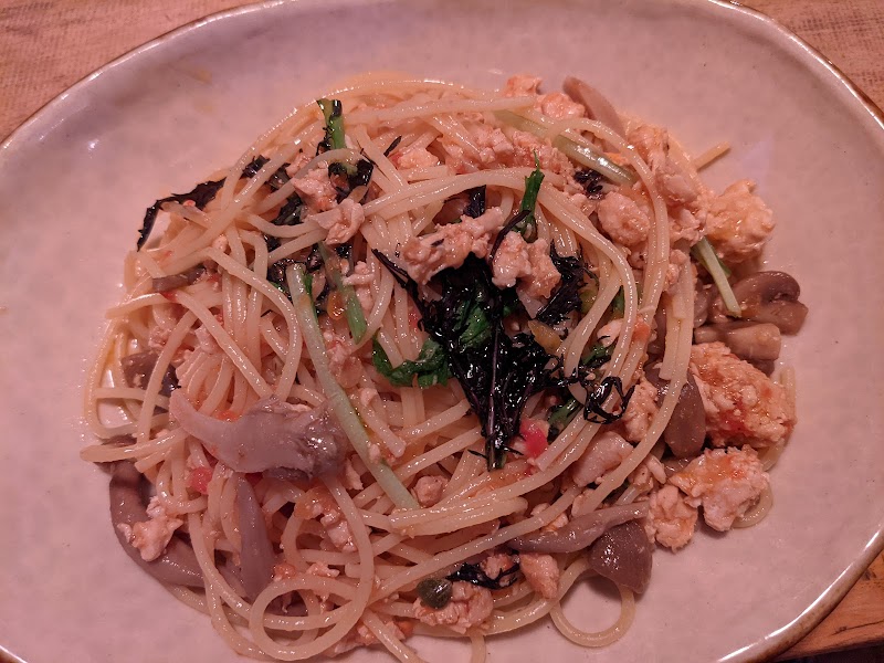 場所はわかりづらい奥まったところにありますが、何度でも来たくなる美味しいお店です。パスタの固さも味付けも絶妙です。食材も新鮮で、コーヒーまで素材のいいものを使ってる感じです。お店は寡黙なマスターが一人。落ち着いた雰囲気ですが、子ども連れのファミリーにも人気です。店内の装飾は奥様の手がきの絵が描かれていて、安らぎます。パスタはほんとに美味しい。