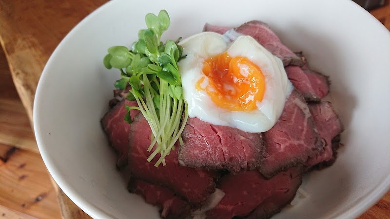 古民家を改築していて内装はとてもきれいです。ローストビーフ丼とローストポーク丼をシェアして頂きました。美味しかったです。駐車場あります。ごちそう様でした。