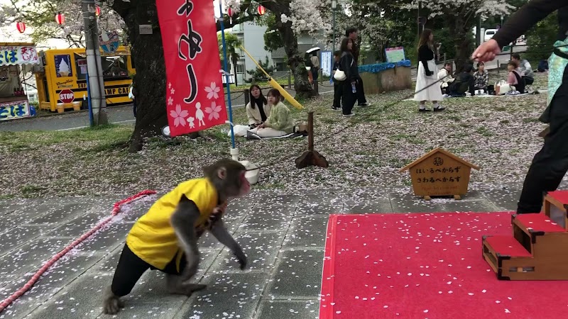 満開の桜を背景に、猿まわしなどの楽しいイベントも行われていました。