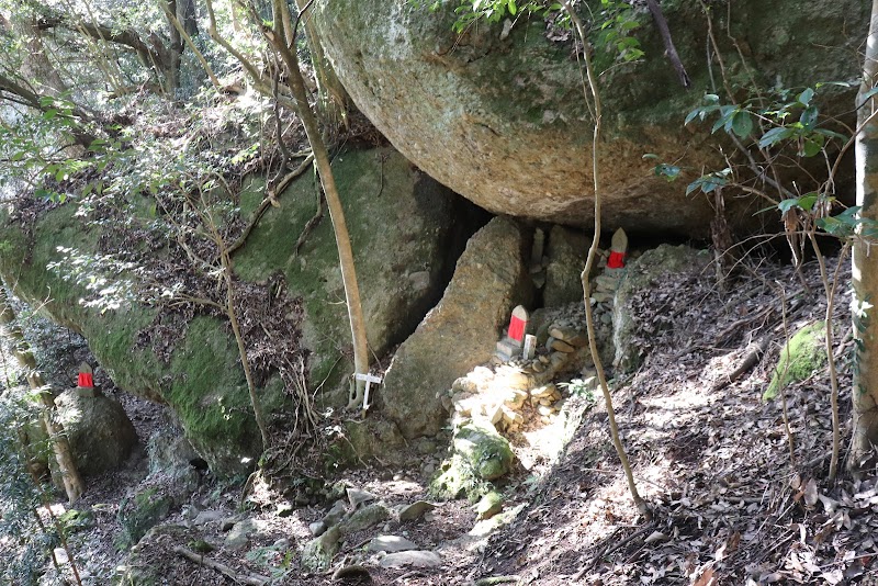 小規模ながら立派な巡礼地です。88ヵ所を模したお地蔵さんがあり、順路を示した看板も有ります。霊嚴寺の横の道を進むと広場に出ます。十分な駐車スペースが有ります。山自体が砂岩の岩峰で、所々岩が抉れ、山頂直下には洞窟の中に稲荷神社と毘沙門堂が有り、その横には洞窟を屋根とし、扉と床だけの奥の院が有ります。久万高原町の古岩屋の規模を縮小した感じです。頂上には梯子で登り、頂上の尾根には展望台や岩峰の谷間に渡した橋が有り、スリル満点です。ただし高所恐怖症の方にはお勧め出来ません。コース全体で1時間半程度掛かりますが、厳かな雰囲気で心癒される巡礼の山です。