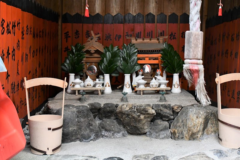 芝国大名神社柴國大明神この神社を見つけるのは本当に難しいことです。神社には1人分のスペースしかありません。この場所は、町の複雑な部分の非常に狭い道にある2つの家の間にあります。この神社は火からの保護を提供すると考えられています。(Trans-word +:TGM京都ガイド)(原文)Shibakuni Daimyojin Shrine 柴國大明神Finding this shrine is a real challenge. The shrine only has a space for 1 person to fit in. The place is located in between 2 housed in a very narrow path in a complicated part of the town. It is believed that this shrine provides protection against fire.( Trans-word+ : TGM Kyoto Guide )