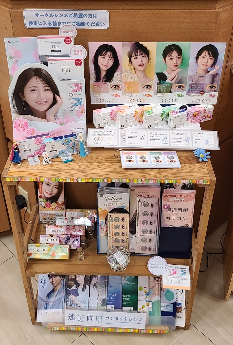 初診でした。待ち時間もほとんどなく、スムーズに診察からコンタクトの作成まで、丁寧にして頂きました。病院にて視力検査をして、先生に眼球の確認診察をしてもらい、コンタクトコーナーへ。コンタクトコーナーにて、コンタクトの種類を選び、品質やメーカーの特徴を教えて頂きました。その後、目の視力を検査し、実際に購入するレンズを使用しました。老眼からコンタクトもなかなか使いずらくなりました。その相談もしながら、近視が強いため、それに合わせて作成。11:00に来院し、12:00に会計まで終了。他患者の皆さんも結構いましたが、スムーズに購入まで出来てとても良かったです。職員の方も優しく丁寧な説明、質問にも寄り添い、話しやすい雰囲気で安心でした。また、お世話になります。